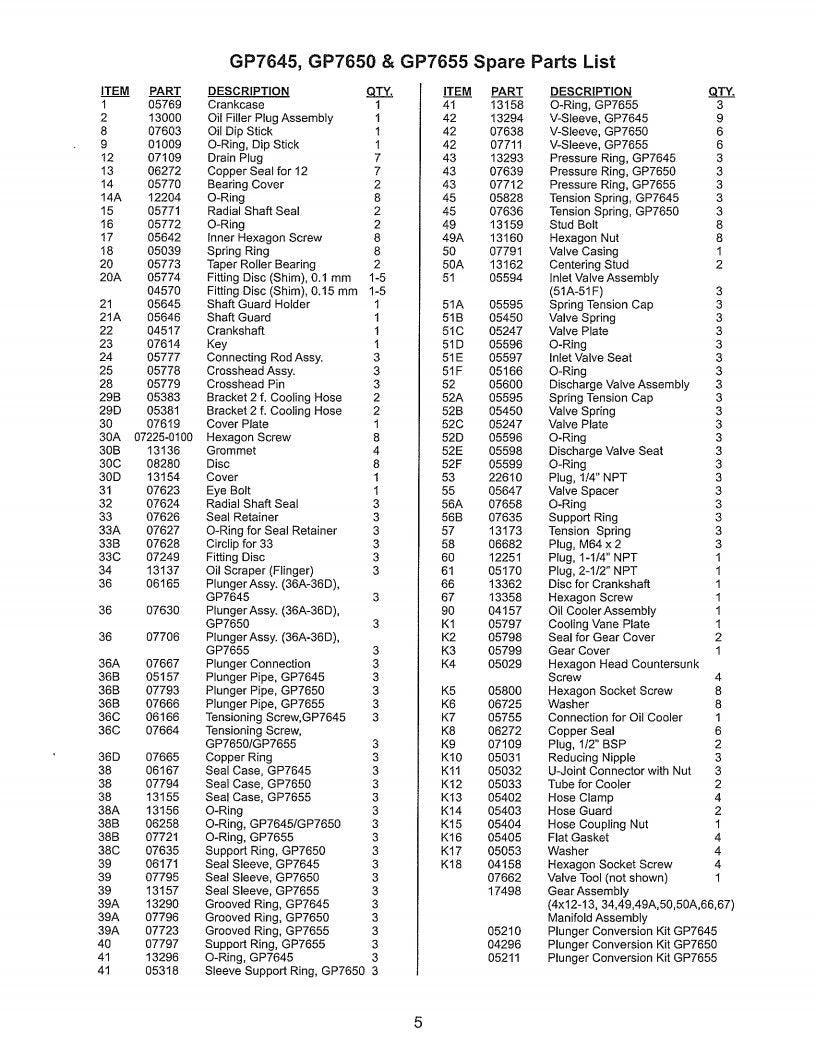 All components are manufactured to meet the operational requirements of 2000 PSI continuous-duty performance. Whether servicing the gear drive, fluid end, or power end assembly, these parts keep your GP7655 operating efficiently in demanding field conditions.