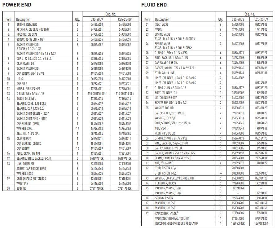 C35-20L Myers Pump Parts | 35 GPM @ 2000 PSI